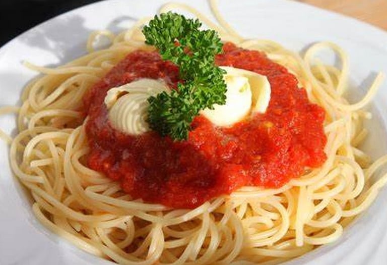 Indulge in the irresistible flavors of our homemade spaghetti, crafted with care and skill using only the finest, fresh ingredients.